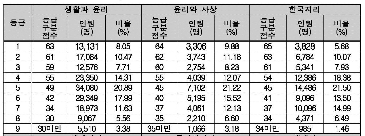 2019학년도 사회탐구 영역(생활과 윤리, 윤리와 사상, 한국지리) 확정 등급컷, 구분 표준점수 입니다.