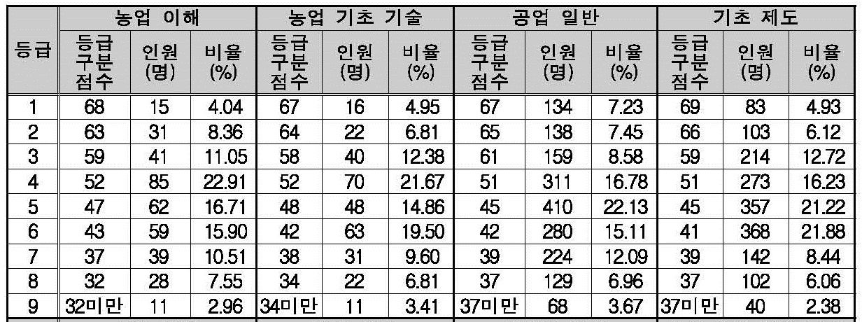 2019학년도 직업탐구 영역(농업 이해, 농업 기초 기술, 공업 일반, 기초 제도) 확정 등급컷, 구분 표준점수 입니다.