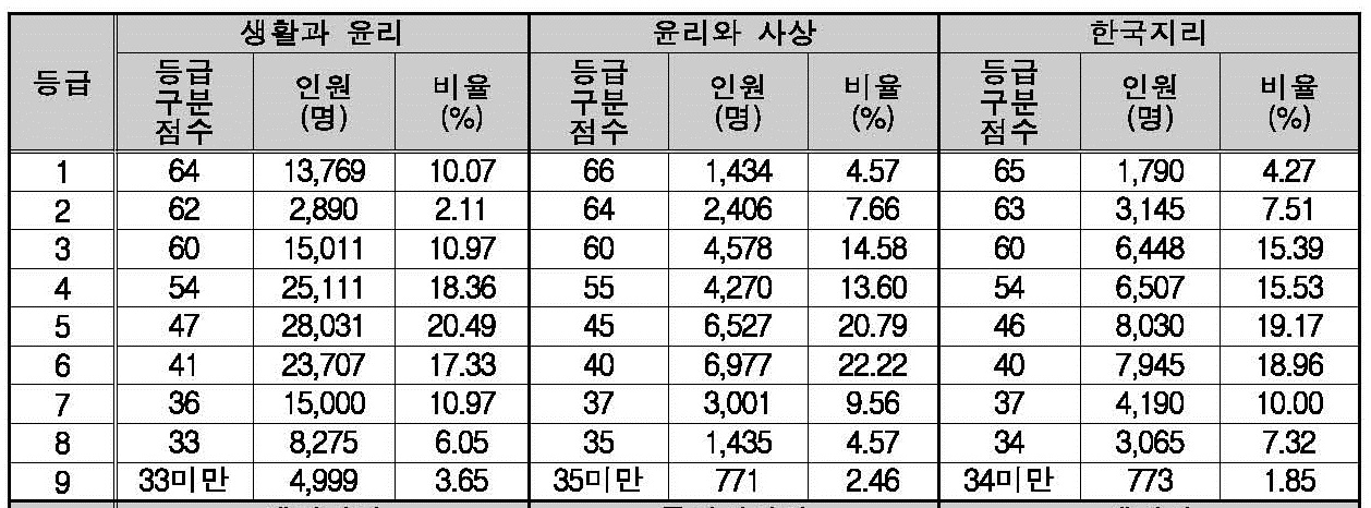 2022학년도 사회탐구 영역(생활과 윤리, 윤리와 사상, 한국지리) 확정 등급컷 및 구분 표준점수 입니다.