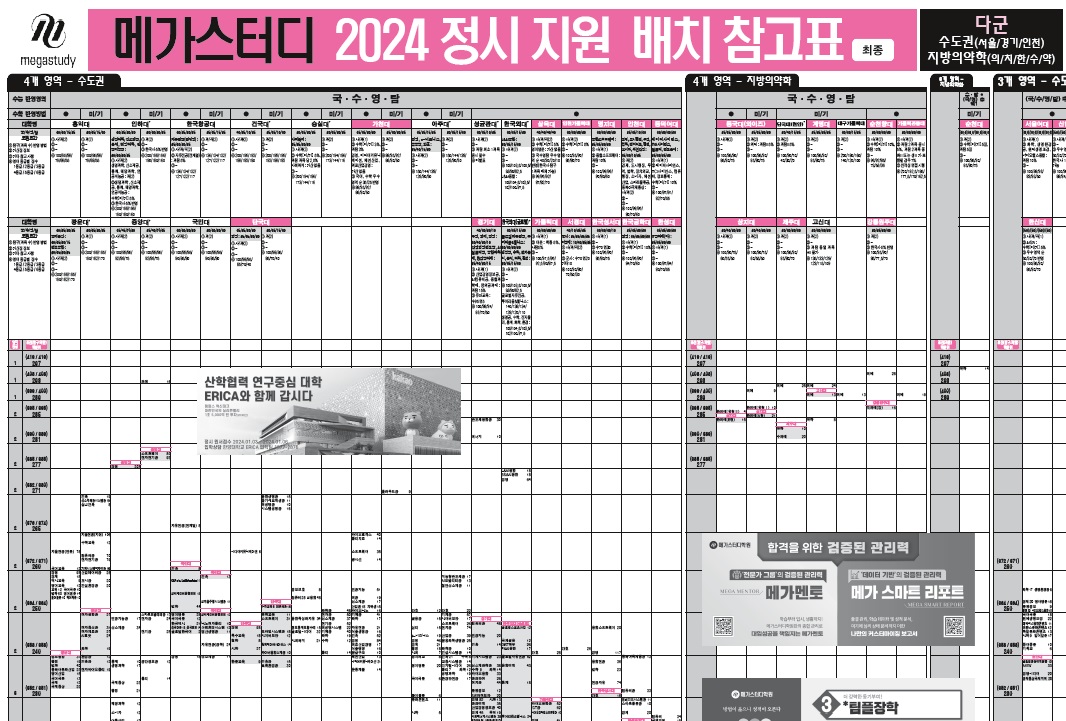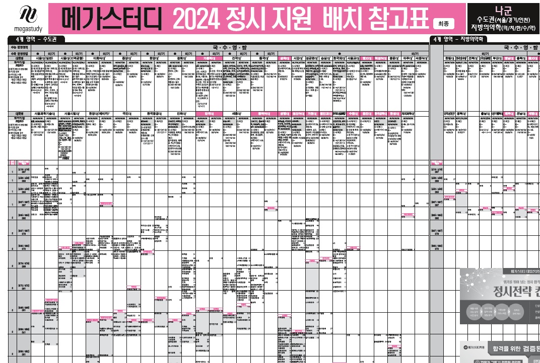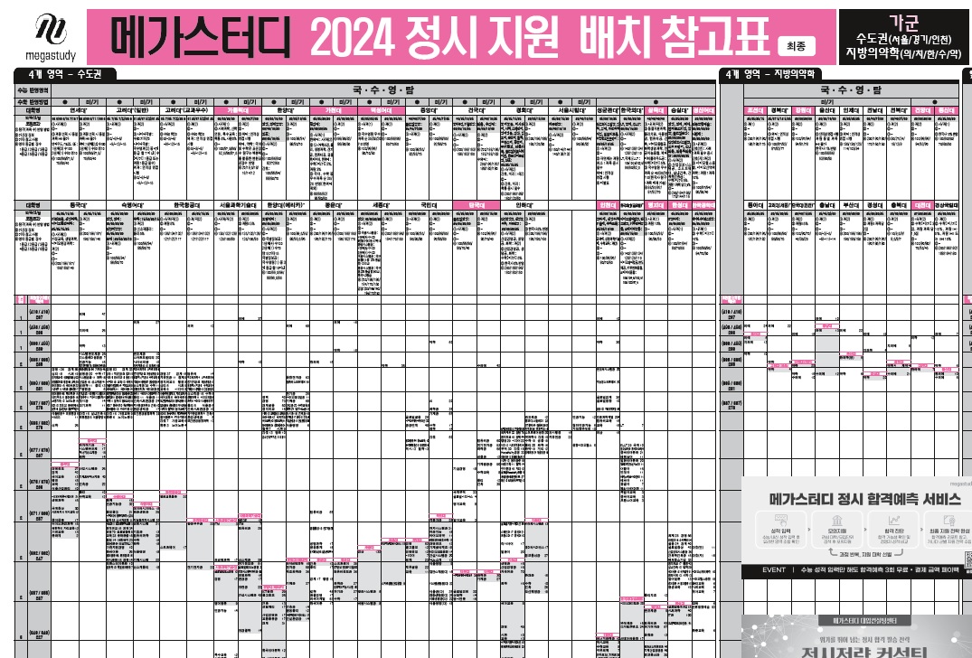 2023학년도 대학수학능력시험 실채점 정시 배치표(장판지)